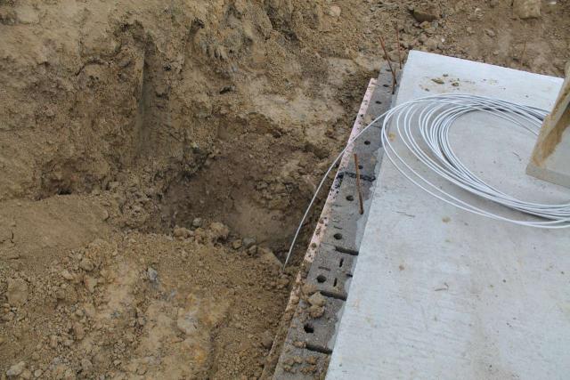 Es wird mit den Verfüllarbeiten begonnen. Der Ringerder wird jetzt doch Richtung kellerlosem Teil geführt. Von der Kellersohle steigt er an bis zum EG Fundament und wird hier anscheinend in einem extra Graben gelegt, der nur zu diesem Zweck aufgekratzt wird. Er verläuft also Diagonal nach oben und nicht einer Ebene. Jetzt haben wir eine 3D Ausführung.