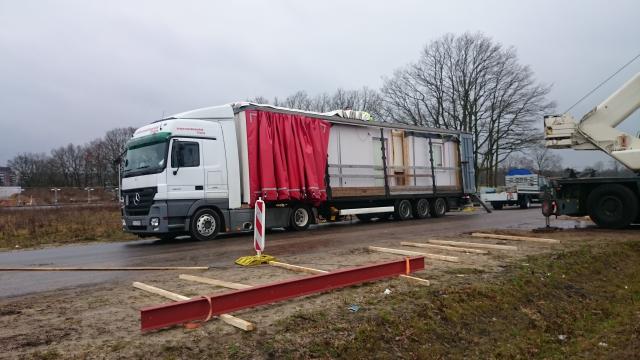 Der LKW, dessn Ausfahrt aus dem Werk wir zeigten, ist heute Nacht angekommen: