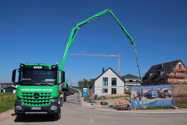 Am Nachmittag dann ein drittes Mal auf der Baustelle, war die Kellersohle bereits vollständig für den Beton vorbereitet. Dies war unsere Chance noch einmal in Ruhe alles zu dokumentieren und ein paar Glücksbringer in die Kellersohle einzulegen. Kurz darauf rückten dann auch bereits die Betonpumpe sowie der erste Betonmischer an.