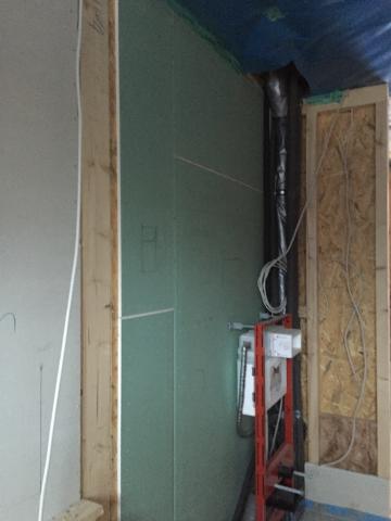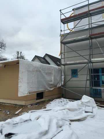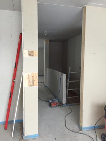 Die Installationsebene wird nach und nach geschlossen. Die Innenwände werden seit Anfang Januar im StG eingebaut.