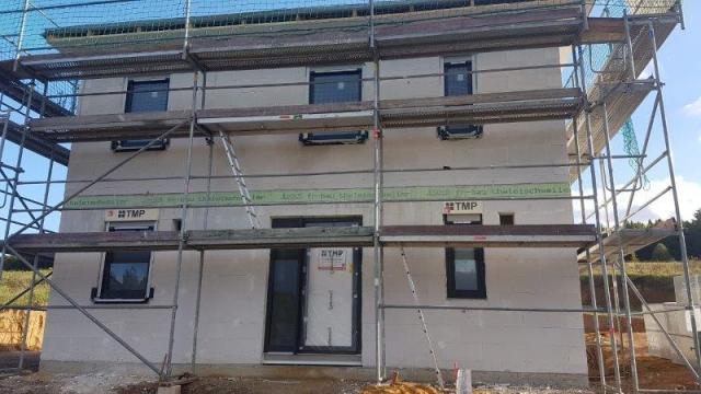 Eigentlich hätten die Fenster und die Tür schon letzte Woche geliefert und montiert werden sollen. Eigentlich...aber als ich dann auf dem kurzen Dienstweg bei unserem Bauleiter nachfragte, hieß es dann erst am Montag. Also heute raus gefahren um zu schauen. Und tatsächlich die Fenster (inkl. der Rollläden) und die Tür wurden geliefert und schon alle montiert. Sogar die Fensterbänke sind teilweise schon montiert gewesen.