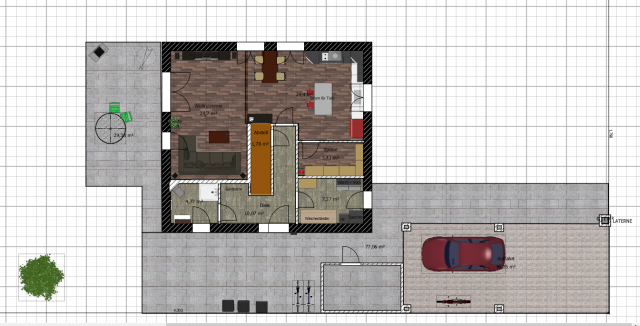 Da ich Informatiker bin ist mein erster Ansatz gewesen ein Programm zu suchen mit dem man genau das machen kann, einen Grundriss zeichnen. Im idealfall mit ein paar mehr Einstellungsmöglichkeiten. Nach doch relativ kurzer Suche bin ich dann auf das Tool Sweet home 3D gestossen. (Zu finden hier: http://www.sweethome3d.com/de/download.jsp ) Das Tool ist nicht 100% intuitiv aber dann doch gut nutzbar, auch für Frauen geeignet ;-P