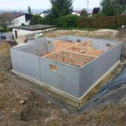 Als ich dann auf der Baustelle war, wurde gerade die Kellerdecke gegossen. Der Beton prasselte regelrecht auf unsere Kellerdecke. Der ein oder andere Spritzer ging natürlich daneben und so schmücken leichte Betonreste auch unseren Garten. Aber ich bin sicher, dass das von den Handwerkern wieder entsorgt wird