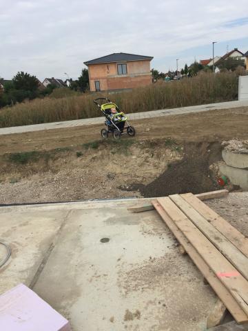 Heute kam unsere Regenwasserzisterne geliefert. Die Firma NEWO-Bau bereitete hierzu beim Verfüllen der Baugrube die nötigen Aussparungen vor. Bestellt hatten wir die Zisterne bei der Firma "Die Regenmacher" mit einem Fassungsvermögen von 5300Liter.
