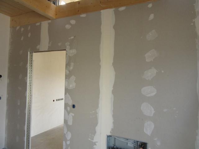 Wir waren zudem überrascht, dass die Trockenbauer heute doch da waren uns die restlichen Wände verspachtelt haben. Sie sind zwar noch nicht abgeschliffen, aber wenigstens ist schon alles zu.