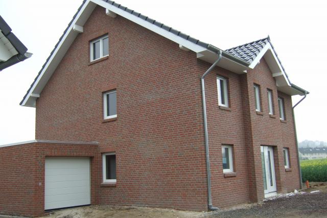So sieht unser Haus nun von vorne mit Haustür aus.